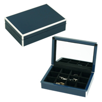 Sonny Custom Luxury Gloss Paint Blue 12 Slots Wooden Cufflinks Box with Mirror